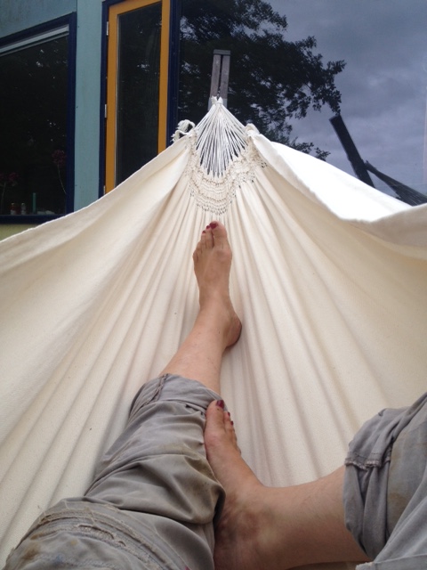 Hoewel ik regelmatig op Funda te vinden ben en de omgeving af struin staat mijn eigen zoektocht toch wat stil. Ik heb enorm sterk de behoefte om stil te worden, naar binnen te gaan. Voor een doener als ik een hele kunst kan ik je zeggen. Gelukkig heb ik fijne vrienden om me heen. Zo kreeg ik ‘de kunst van het nietsdoen’ te leen en gaf een andere vriendin mij een waanzinnig grote hangmat, die me direct in een ‘let go’ sfeer brengt en waarin ik geniet van de voorbijtrekkende wolken, de boomtop dichtbij.