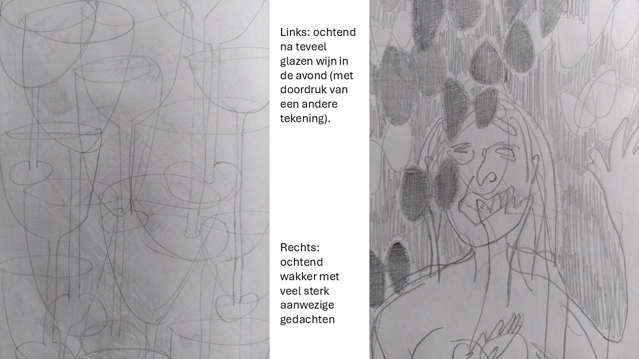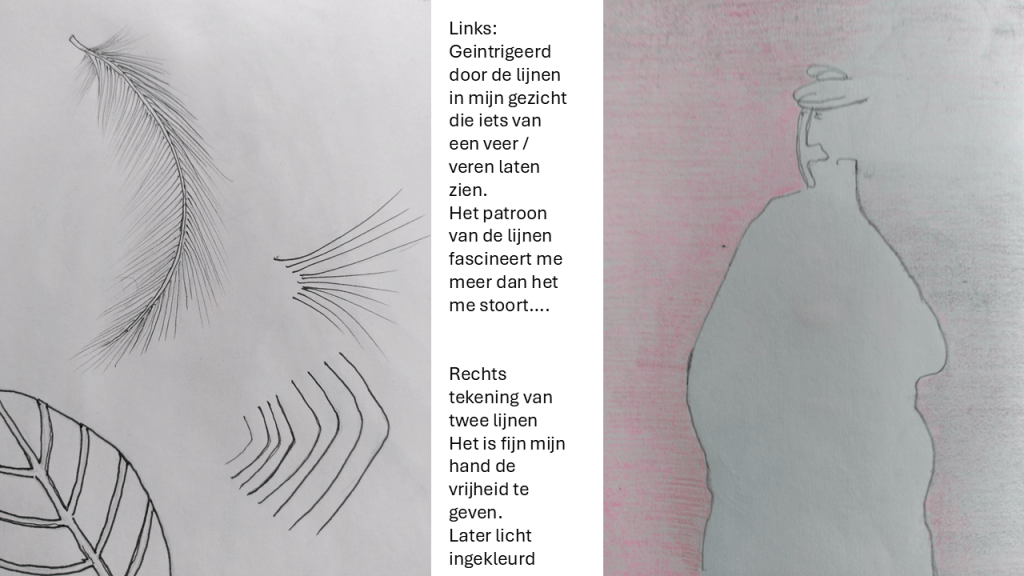 Rond 2008 toen ik nog in Amsterdam woonde begon ik met dichten. Tot nu toe heb ik daar niets mee gedaan. De levende lijnen schreef ik in die tijd. De schetsen zijn van deze zomer.