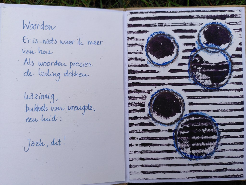 Besides words, I enjoy making things. Sometimes big and compelling and sometimes small with little pretension. It is not without reason that she was once trained as a creative therapist. The language of the image and working with materials, give me great pleasure. Sometimes it involves small struggles as well, it doesn’t always come naturally. It still feeds my inner critic. And at the same time, it is a meditation, I can get completely absorbed in it: ‘the dancer disappearing in the dance’.